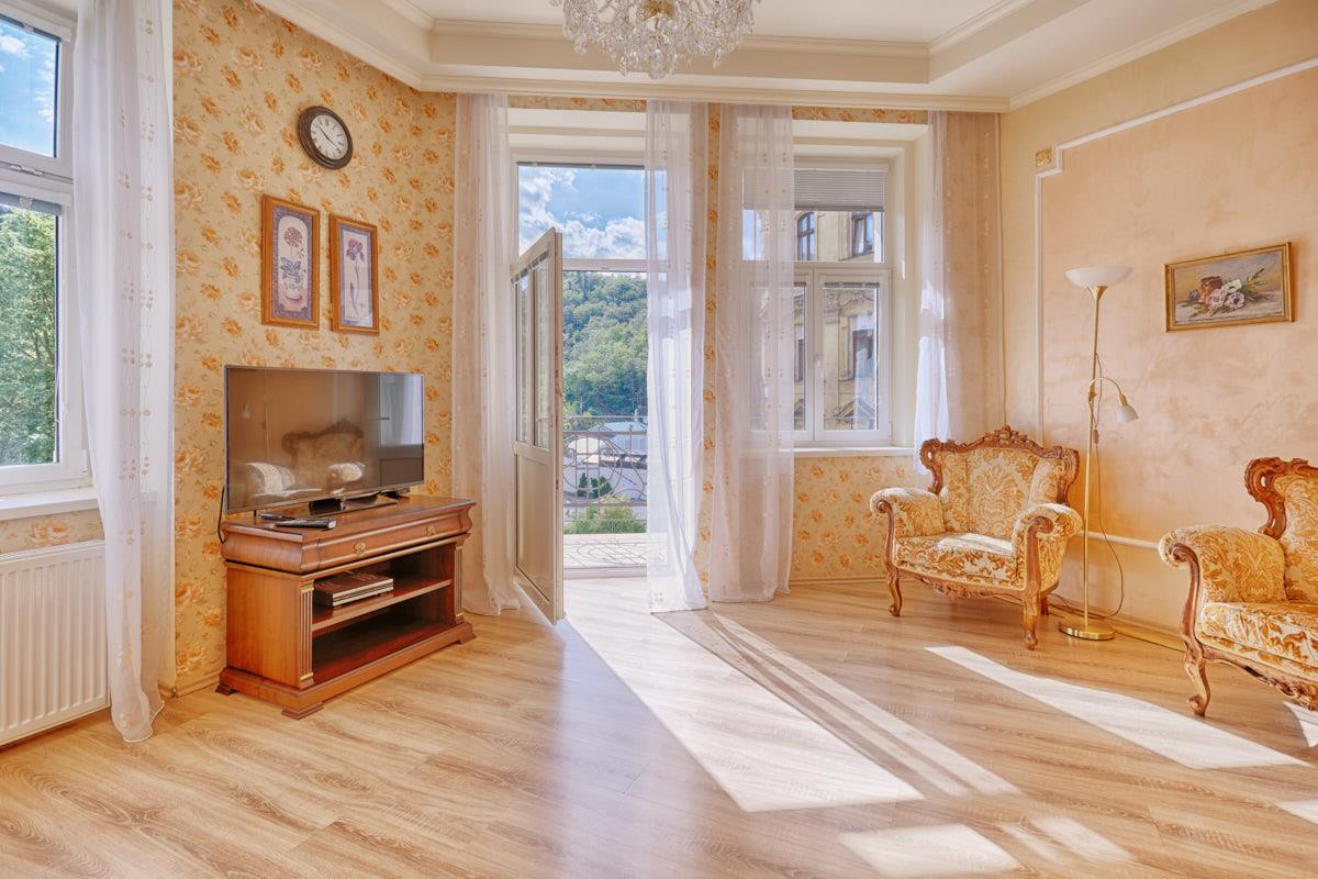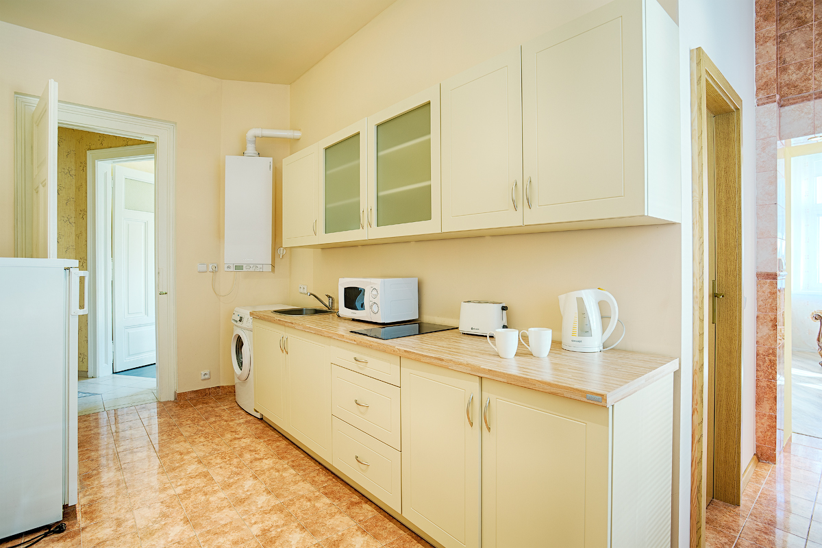 The apartment ROSY is situated on the 1st floor. You can enjoy beautiful view to the mountains and garden from the balcony. The apartment has a living-room, a kitchen, a bedroom, a bathroom and WC. In the living-room an extra bed is provided. There is a wide screen LED TV set, a sofa, a table with chairs. Kitchen includes dishwasher, fridge, toaster, microwave, all necessary dishes, cleaning products. In the apartment there are iron, ironing board, vacuum cleaner, washing machine, clothes dryer. We are living within 5 minutes going from the apartment. The guests are able to reach us any time they need. Please, call us not less than 1 hour before your arrival. We will meet you. Please, in case you are coming by car inform us beforehand. Unfortunately, in our apartments accommodation with animals is not possible. In case the guests come for more than a week one more bed linen set and extra towels. For extra payment cleaning during period of accommodation is possible.